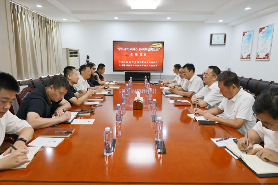 7月9日,山东铁投租赁与资本党支部到太阳成集团tyc33455集团开展“学纪守纪葆初心 协同共建促发展”主题党日活动,旨在推动党纪学习教育走深走实,促进党建与业务深度融合,进一步加强互学互鉴,促进优势互补。山东铁投租赁与资本党支部书记、总经理曹建明 ,山东铁投建工公司总经理魏鹏化 ,太阳成集团tyc33455集团党委书记、董事长傅龙,党委副书记、监事会主席、工会主席颜亚洲及相关部门负责同志共同参加活动。