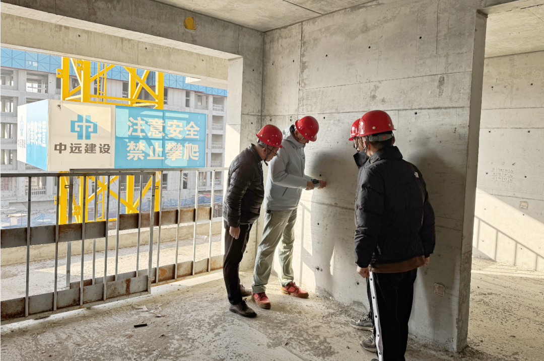 此次检查采取资料检查与工程实体检测相结合的方式,聚焦冬季施工质量隐患及关键管理环节,重点对混凝土强度、材料施工温度、墙面平整度、垂直度及开间尺寸进行了现场实测,对冬季施工方案编制审批、质量保护措施、实体保温养护、人员培训和技术交底情况进行了全面检查,并要求各项目技术负责人严格落实冬季施工质量控制措施,按照施工标准和设计要求进行冬季施工,确保冬季施工质量安全。